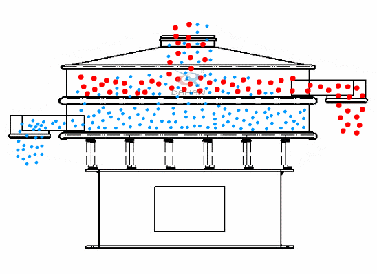 不銹鋼振動篩由直立式振動電機作為激振源,電機上、下兩端安裝有偏心重錘,將電機的旋轉運動轉變?yōu)樗?、垂直、傾斜的三次元運動,再把這個運動傳遞給篩面,使篩面上的物料一起運動,小于篩面孔徑的物料通過篩孔落到下層,大于篩面孔徑的物料從排料口排出,終完成篩分工作。在實際運行過程中,還可以通過調節(jié)上、下兩端的相位角,改變物料在篩面上的運動軌跡,從而達到不同篩分目的。