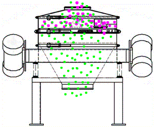 直排篩是以振動(dòng)電機(jī)為激振源,物料進(jìn)入系統(tǒng)內(nèi)部后,受振動(dòng)源作用力在篩面上做三維旋轉(zhuǎn)運(yùn)動(dòng),從而使面粉及結(jié)塊充分分散,快速過網(wǎng)進(jìn)入下部面?zhèn)}。