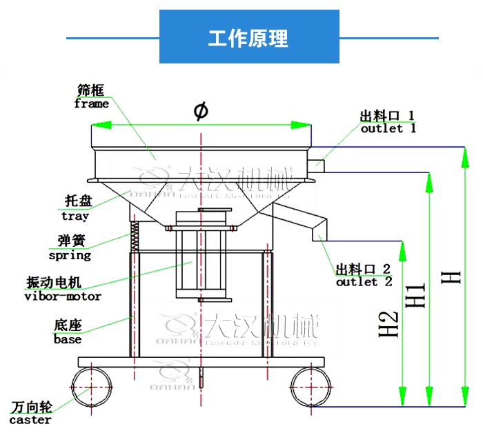 1、采用了高頻振動(dòng),振動(dòng)頻率高達(dá)1500-7200轉(zhuǎn)/分,使得物料在篩面上產(chǎn)生高速振動(dòng),可以加快物料之間的分離,篩分效果更為顯著;