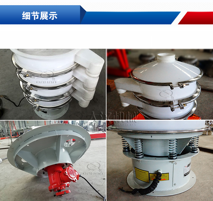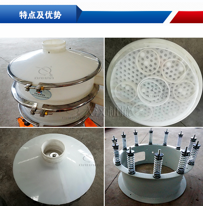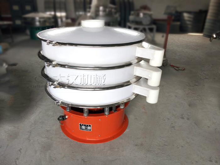 化工振動篩是特殊性、高粘度、細粒物料篩分過濾設(shè)備,又叫化工耐腐蝕振動篩,主要用于篩分各種化工物料,細粉、微粉、及干、濕物料等,適用于酸性、堿性、油性等化工生產(chǎn)。大漢化工振動篩篩分細至500目或0.028mm,過濾小可至5微米??裳b一至五層篩網(wǎng),能同時對二至六個等級的物料進行分選或過濾。