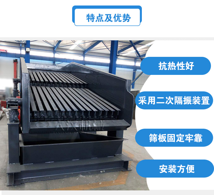 1、抗熱性好,橫梁及篩箱側(cè)板采用耐熱板或不銹鋼板制造,并用環(huán)槽鉚釘鉚接,篩板采用耐磨耐高溫材料制成,可以耐600-800℃的高溫;
