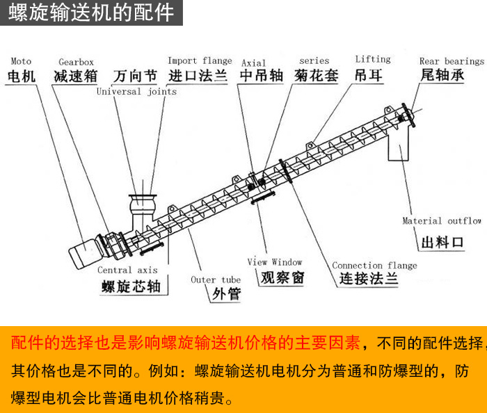 2、螺旋輸送機(jī)的配件