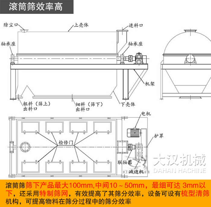 以上是新鄉(xiāng)大漢單臺(tái)滾筒篩價(jià)格介紹及分析,大漢技術(shù)人員免費(fèi)為用戶(hù)提供滾筒篩選型、安裝、調(diào)試等指導(dǎo),歡迎用戶(hù)前來(lái)咨詢(xún)或直接來(lái)廠參觀考察。