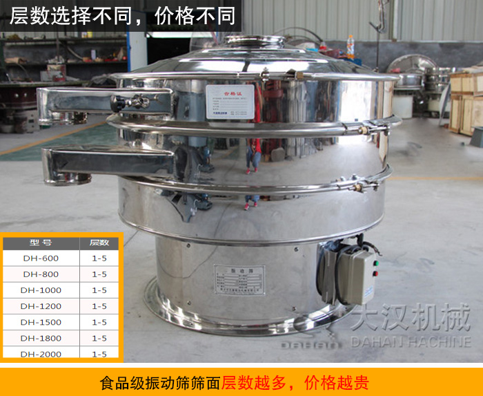 大漢機械推薦一款專門用于食品行業(yè)的振動篩,即食品振動篩,食品振動篩對衛(wèi)生標(biāo)準(zhǔn)要求比較嚴(yán)格,所以整機采用304不銹鋼材質(zhì)。該設(shè)備干凈、衛(wèi)生、無死角,全部進行剖光處理,完全達(dá)到食品衛(wèi)生標(biāo)準(zhǔn)。新鄉(xiāng)大漢一臺食品振動篩價格6000~15000元之間。但是不同型號、層數(shù)等不同,價格也會相應(yīng)有所變化。