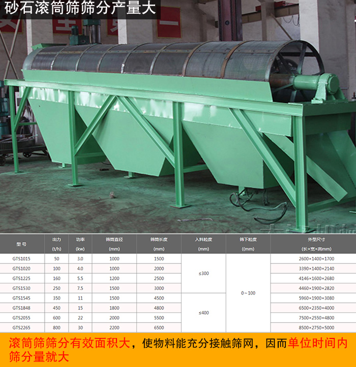 2、砂石滾筒篩篩分產(chǎn)量大