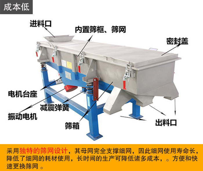 直線振動篩作為為常見的一種振動篩,采用獨特的篩網(wǎng)設計,其母網(wǎng)完全支撐細網(wǎng),因此細網(wǎng)使用壽命長,降低了細網(wǎng)的耗材使用,長時間的生產(chǎn)可降低諸多成本,方便和快速更換篩網(wǎng) 。