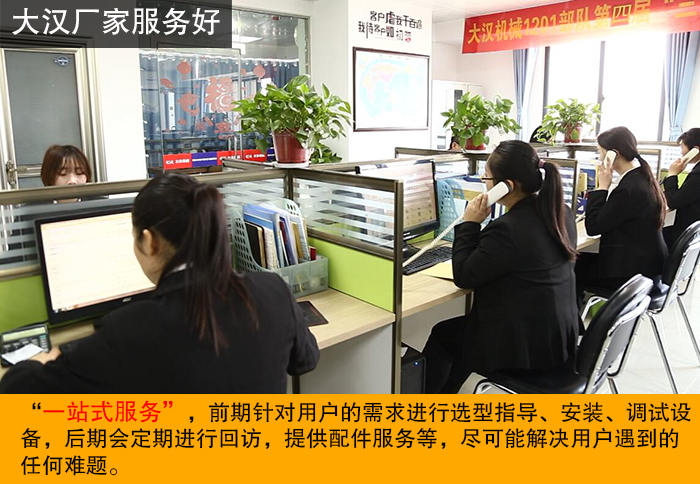 大漢始終腳踏實地地走“一站式服務'路線,前期針對用戶的需求進行選型指導、安裝、調(diào)試設備,后期會定期進行回訪,提供配件服務等,盡可能解決用戶遇到的難題,讓用戶買的安心,用的放心。