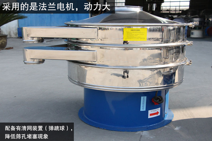 旋振篩采用的是法蘭電機(jī),動(dòng)力大,篩分效率高,還配備有清網(wǎng)裝置(彈跳球),可減少油菜籽在篩分的過(guò)程中的堵網(wǎng)現(xiàn)象,極大的提高了篩機(jī)的篩分產(chǎn)量和篩分效率。