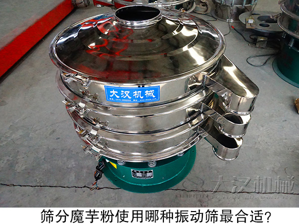魔芋粉是由魔芋制成的粉體,可以有效防治高血壓和高血脂,屬于一種天然的保健品,在魔芋粉生產(chǎn)加工過程中,需要使用振動篩對其進行篩分除雜作業(yè),那么篩分魔芋粉使用哪種振動篩合適呢?大漢廠家在這里向您推薦旋振篩,詳細介紹如下: