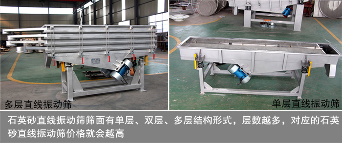 石英砂直線振動(dòng)篩篩面有單層、雙層、多層結(jié)構(gòu)形式,對(duì)各種顆粒狀和小塊狀固體物料進(jìn)行干濕式分級(jí),是目前國(guó)內(nèi)處理難篩物料的振動(dòng)篩設(shè)備之一,可根據(jù)客戶篩分過(guò)濾要求單層或多層使用,多可達(dá)到5層,層數(shù)越多,對(duì)應(yīng)的石英砂直線振動(dòng)篩價(jià)格就會(huì)越高。