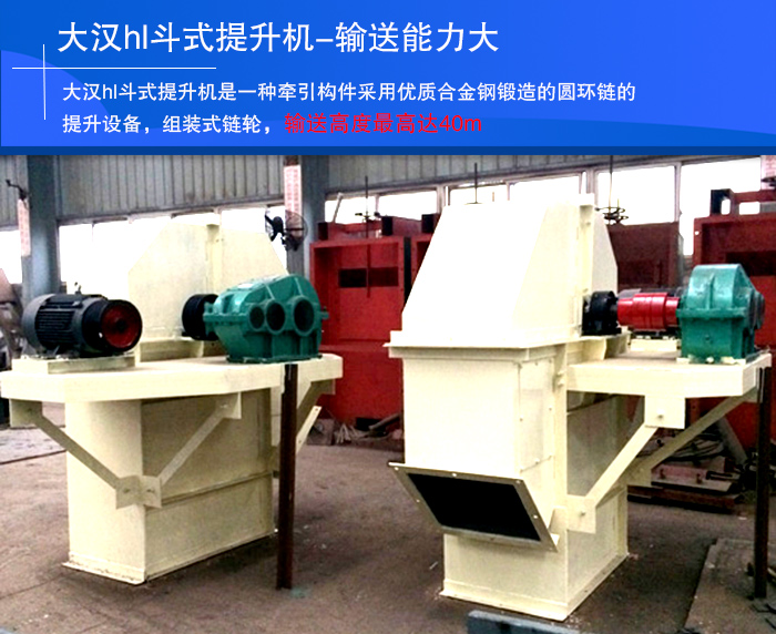 大漢hl斗式提升機(jī)是一種牽引構(gòu)件采用優(yōu)質(zhì)合金鋼鍛造的圓環(huán)鏈的提升設(shè)備,組裝式鏈輪,由輪體、輪緣用高強(qiáng)度螺栓聯(lián)接而成,當(dāng)在鏈輪磨損到一定程度后,可擰下螺栓,拆換輪緣,更換方便,且節(jié)約拆料、降低了維修費(fèi),耐磨抗拉程度強(qiáng),輸送高度高達(dá)40m。