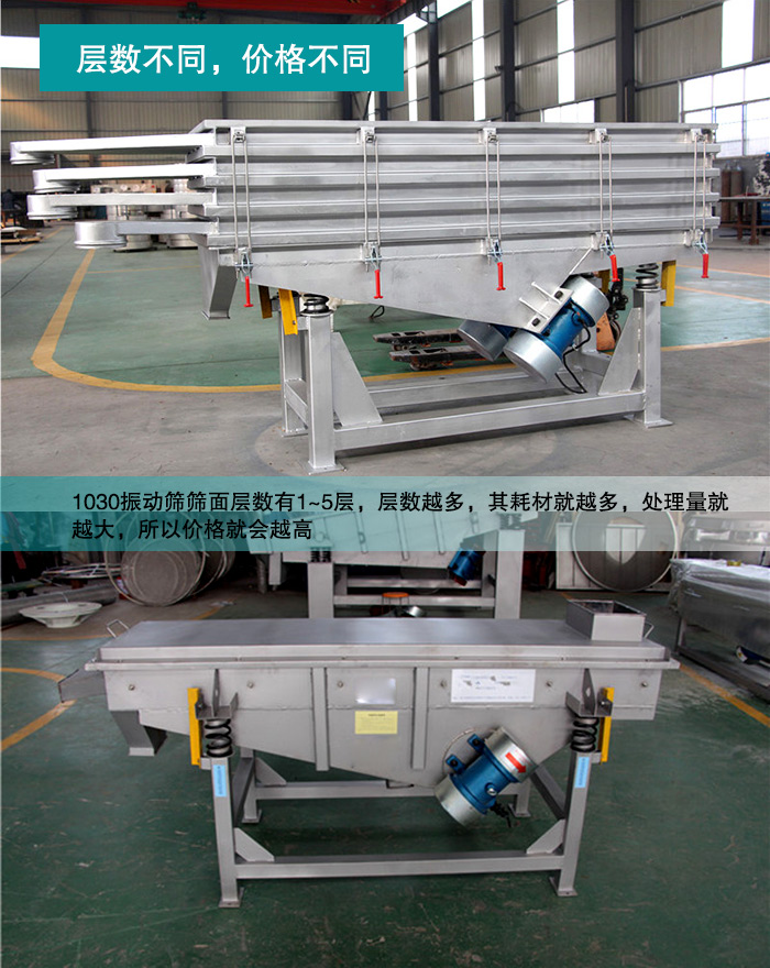 大漢型1030振動(dòng)篩篩面層數(shù)有1~5層,層數(shù)越多,其耗材就越多,處理量就越大,所以?xún)r(jià)格就會(huì)越高。