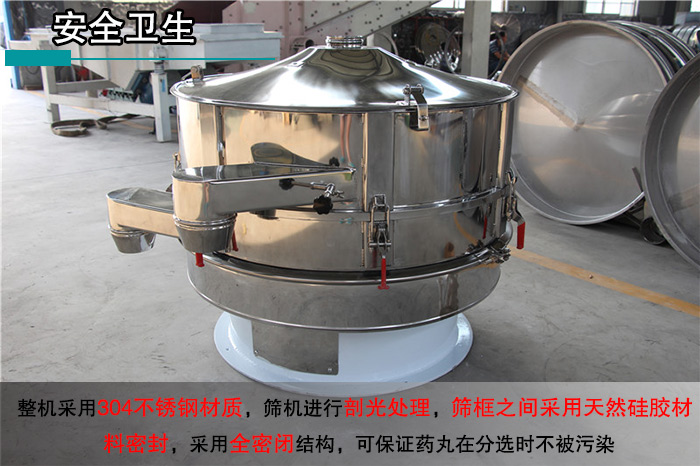 藥丸關(guān)系著人體的健康,所以在選擇藥丸振動篩時非常注重其是否達到衛(wèi)生標準。。而不銹鋼振動篩整機采用304不銹鋼材質(zhì),篩機進行剖光處理,篩框之間采用硅膠材料密封,采用全密閉結(jié)構(gòu),可保證藥丸在分選時不被污染,完全達到食品衛(wèi)生標準。