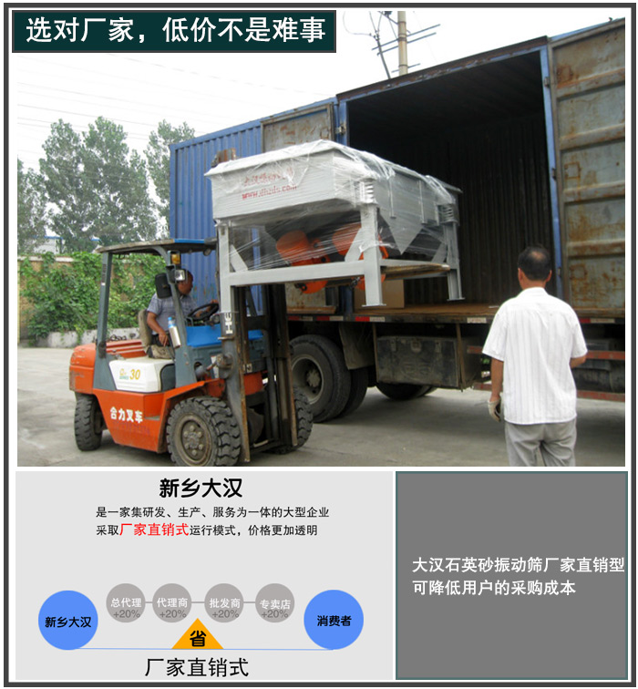 新鄉(xiāng)大漢是一家廠家直銷型企業(yè),生產(chǎn)的石英砂振動篩均為低的出廠價格,可降低用戶的采購成本,用戶購買更舒心
