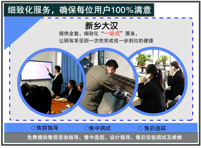 大漢廠家提供全套完備的“一站式”服務,免費提供售前咨詢指導、售中選型、設計指導、售后安裝調(diào)試及維修,盡大努力解決用戶的篩分問題,用戶使用更省心。