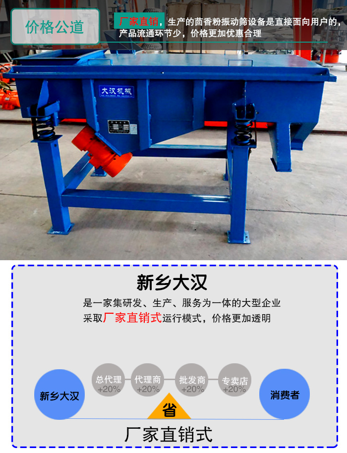 新鄉(xiāng)大漢茴香粉振動(dòng)篩廠家直銷,生產(chǎn)的茴香粉振動(dòng)篩設(shè)備是直接面向用戶的,產(chǎn)品流通環(huán)節(jié)少,價(jià)格更加優(yōu)惠合理。