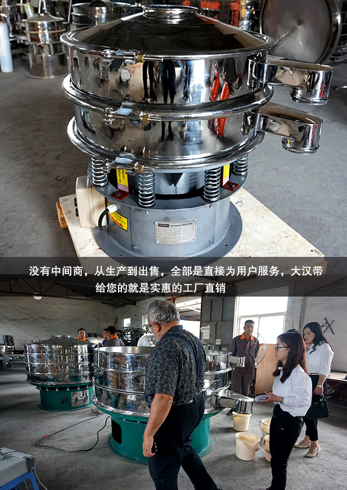 大漢不銹鋼旋振篩沒有中間商,從生產(chǎn)到出售,全部是直接為用戶服務(wù),大漢帶給您的就是實(shí)惠的工廠直銷價(jià),保證讓用戶更省錢、更省心。