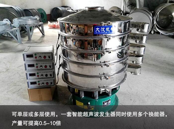 大漢超聲波振動(dòng)篩可單層或多層使用,一套智能超聲波發(fā)生器同時(shí)使用三個(gè)換能器,產(chǎn)量可提高0.5-10倍。