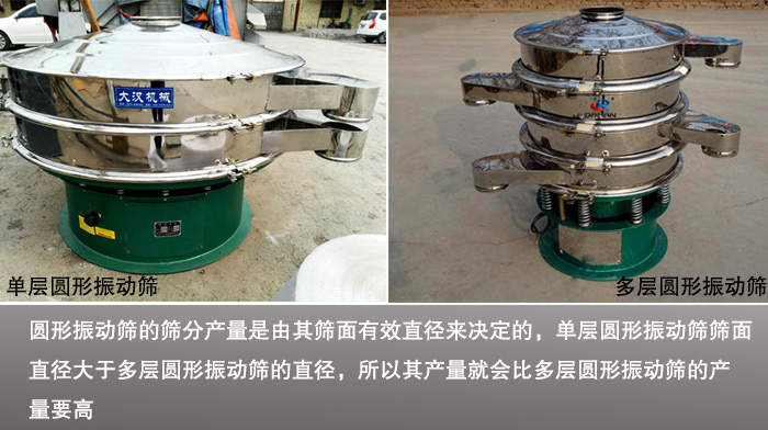 圓形振動篩為一種高精度細(xì)粉篩分設(shè)備,有單層或多層之分,高還可達(dá)到5層,但是單層圓形振動篩與多層圓形振動篩到底有哪些區(qū)別呢?