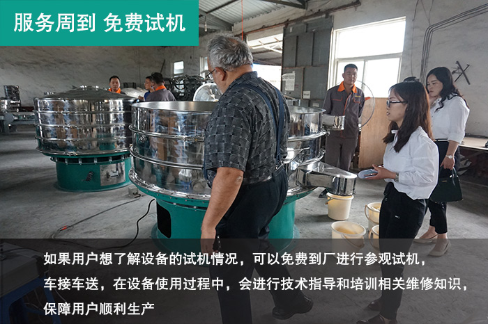為了幫助用戶更快地選購到合適的多層三次元旋振篩,大漢公司提供全面的銷售服務(wù),從售前就進(jìn)行用戶的服務(wù),如果用戶想了解設(shè)備的試機(jī)情況,可以免費(fèi)到廠進(jìn)行參觀試機(jī),車接車送,在設(shè)備使用過程中,會(huì)進(jìn)行技術(shù)指導(dǎo)和培訓(xùn)相關(guān)維修知識(shí),保障用戶順利生產(chǎn)。