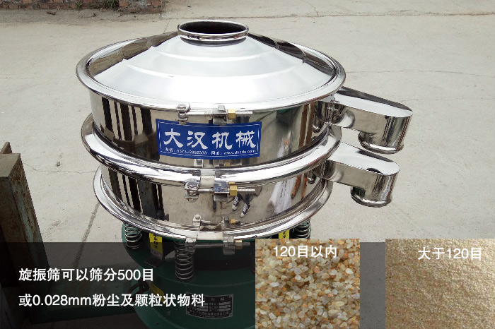120目以內(nèi)的石英砂屬于小顆粒狀,但是大于120目的就呈粉末狀,稱作石英粉,所以對于大于120目的石英粉來講,選擇旋振篩無疑是好的選擇。因為旋振篩作為一種高精度細(xì)粉篩分設(shè)備,是進(jìn)行粉末篩分作業(yè)中佳設(shè)備之一,它可以篩分500目或0.028mm粉塵及顆粒狀物料,由此可見在篩分粉末狀的石英砂時的高效性。