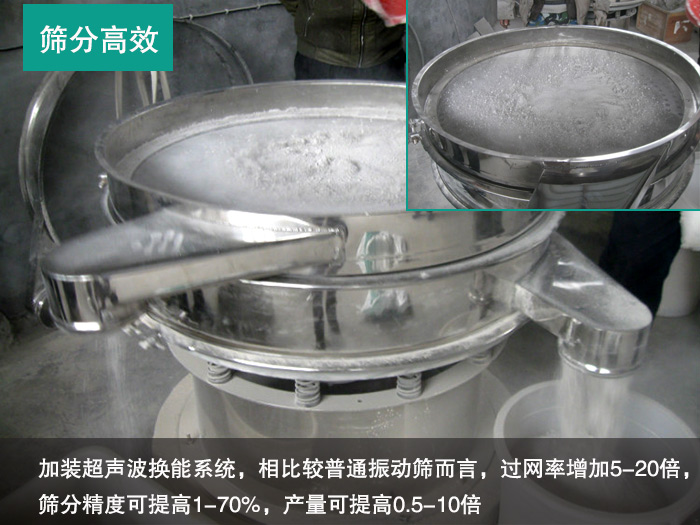 ②我們的微礦粉超聲波振動篩由于加上了超聲波篩分系統(tǒng),因此可以加快團聚物、高靜電、高精細、高密度、比重輕、吸附物料的分離,從而增加其篩分量,相比較普通振動篩而言,過網(wǎng)率增加5-20倍,篩分精度可提高1-70%,產量可提高0.5-10倍,適合日產1000噸微礦粉的超聲波振動篩。