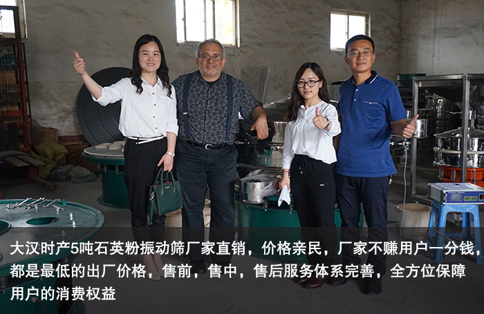 大漢時產(chǎn)5噸石英粉振動篩廠家直銷,價格親民,廠家不賺用戶一分錢,都是低的出廠價格,更利于用戶投資選購。而且大漢公司擁有一系列完善的售前,售中,售后服務(wù)體系,全方位保障用戶的消費權(quán)益。此外,我們強烈歡迎客戶前來我們廠家實地考察,直觀的了解石英粉振動篩的使用情況和效果,體驗一下我們廠家熱情周到的服務(wù)。