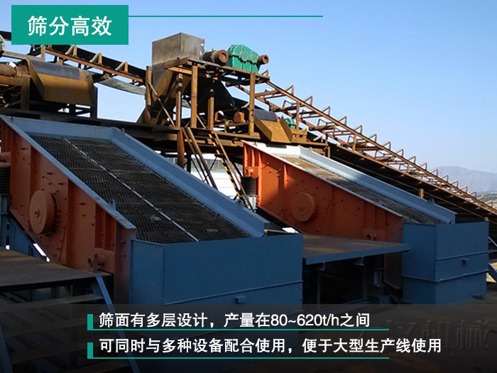 圓振動(dòng)篩篩面有多層設(shè)計(jì),產(chǎn)量在80~620t/h之間,可以滿足砂石骨料生產(chǎn)線高產(chǎn)量要求,還可同時(shí)與多種設(shè)備配合使用,便于大型生產(chǎn)線使用,篩分量大。