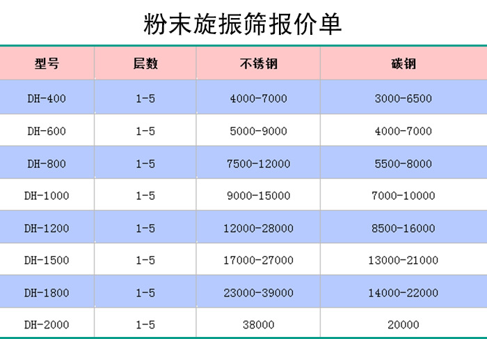大漢一臺粉末振動篩價格4000~22000元之間,詳細可參考下列表格: