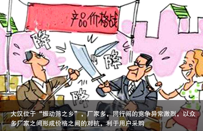 新鄉(xiāng)位于著名的“振動(dòng)篩之鄉(xiāng)”,所以振動(dòng)篩設(shè)備的廠家分布較多,同行間的競(jìng)爭(zhēng)異常激烈,廠家為搶占市場(chǎng)份額,會(huì)適當(dāng)下調(diào)價(jià)格來吸引用戶,所以眾多廠家之間形成價(jià)格之間的對(duì)抗,這對(duì)于我們的用戶來說是非常有利的。