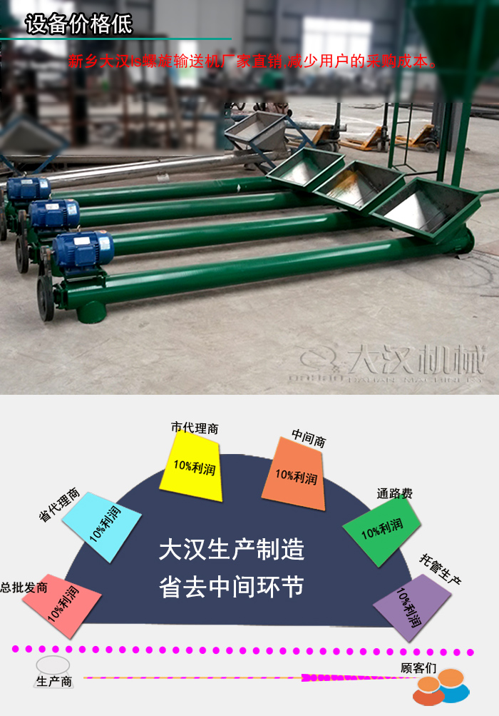 新鄉(xiāng)大漢ls螺旋輸送機(jī)廠家直銷,售出的每一臺(tái)設(shè)備都是直接面向我們的用戶,不存在中間商,可以在一定程度上減少用戶的采購(gòu)成本。