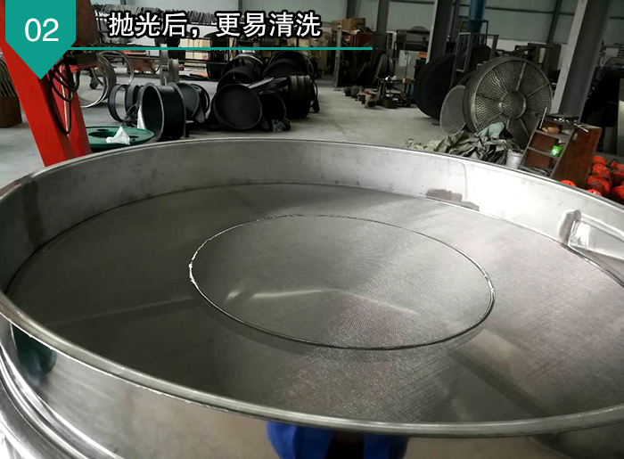 對(duì)粉末振動(dòng)篩進(jìn)行拋光處理后,篩機(jī)的清洗難度會(huì)降低很多,用高壓水槍沖一遍就干干凈凈,從而免除了清洗保養(yǎng)的麻煩和物料殘留造成的腐蝕和污染問題;尤其對(duì)于超細(xì)微粉行業(yè),由于這些微細(xì)粉末非常容易附著難以清理,拋光后的不銹鋼篩分機(jī)不容易過多沾染這些粉末。