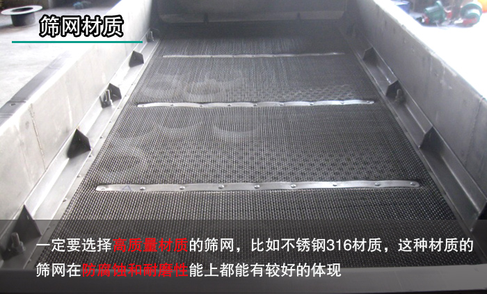 選取優(yōu)質(zhì)的篩網(wǎng)在組裝時(shí)也要注意篩網(wǎng)的張緊度適宜就好,過大的張緊度會(huì)使篩網(wǎng)在激振力的作用下過早的斷裂。