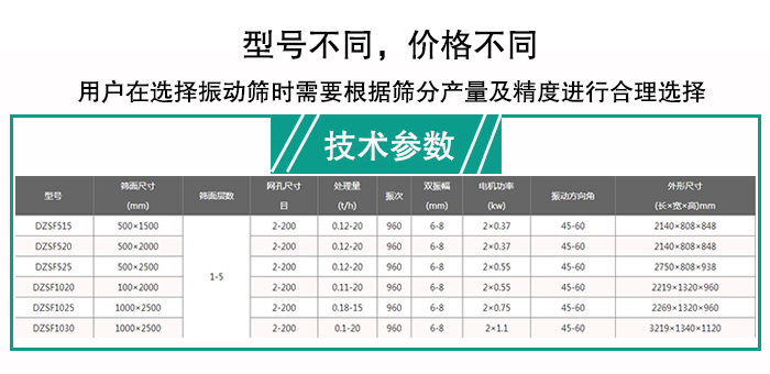 不同用戶對有木屑的篩分產(chǎn)量與篩分精度是不同的,所以不同型號木屑振動篩價格是不同的,如DZSF520型木屑振動篩為5000元,而DZSF525木屑振動篩價格為7000元,所以用戶在選擇振動篩時需要根據(jù)篩分產(chǎn)量及精度進行合理選擇。