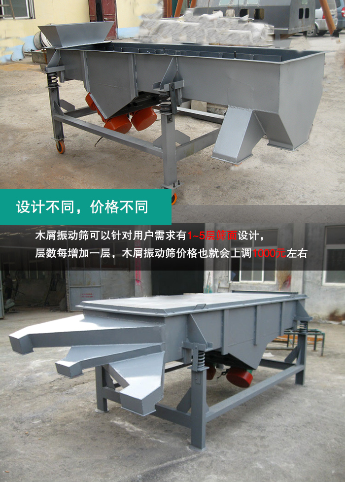 3、不同設(shè)計的木屑直線振動篩,價格有差異