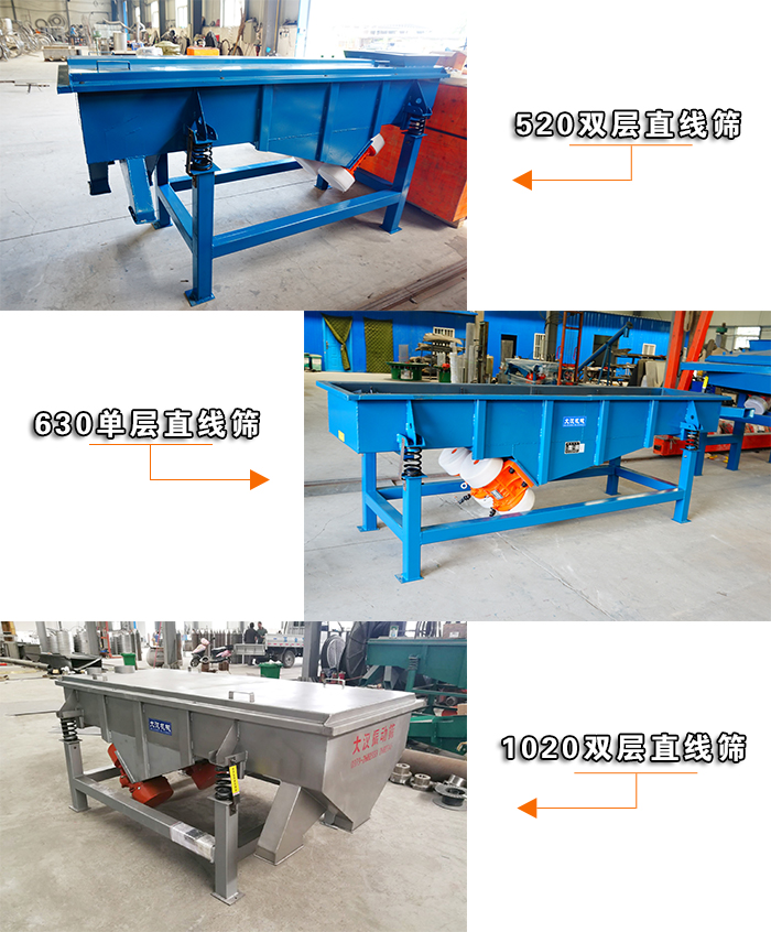 大漢礦用直線振動篩型號多樣,不同型號的礦用直線振動篩,產(chǎn)量從30t/h到100t/h之間,用戶選擇多,更利于投資。