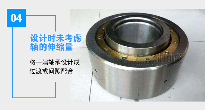 解決方法:將一端軸承設(shè)計(jì)成過渡或間隙配合,以便使激振器軸在熱脹冷縮時(shí)可以相對(duì)于內(nèi)圈進(jìn)行滑動(dòng)。