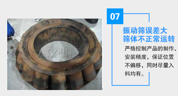 振動(dòng)篩軸承在安裝時(shí)為清潔干凈會(huì)導(dǎo)致軸承滾道磨損,滾動(dòng)體摩擦力增大,溫度升高,致使軸承損壞。