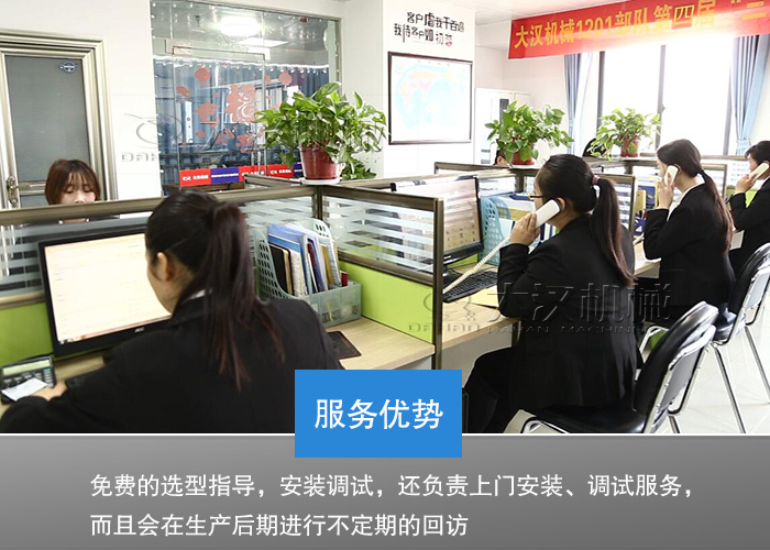 大漢廠家擁有國內(nèi)完善的服務體系,不僅為用戶提供免費的選型指導,安裝調(diào)試,還負責上門安裝、調(diào)試服務,而且會在生產(chǎn)后期進行不定期的回訪,對用戶進行技術(shù)上的指導,保證讓用戶售后無憂。