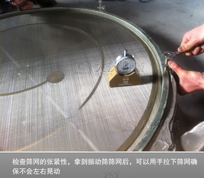 4、檢查篩網(wǎng)的張緊性,拿到振動篩篩網(wǎng)后,可以用手拉下篩網(wǎng)確保不會左右晃動,這樣說明振動篩篩網(wǎng)的經(jīng)緯編織力度一樣,篩分過程中篩面的平整度、度、抗破損性都比較高。