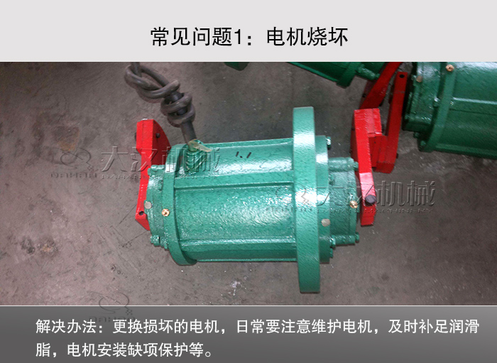解決辦法:更換損壞的電機(jī),日常要注意維護(hù)電機(jī),及時(shí)補(bǔ)足潤(rùn)滑脂,電機(jī)安裝缺項(xiàng)保護(hù)等。