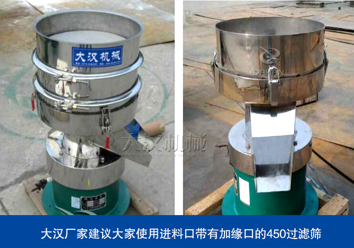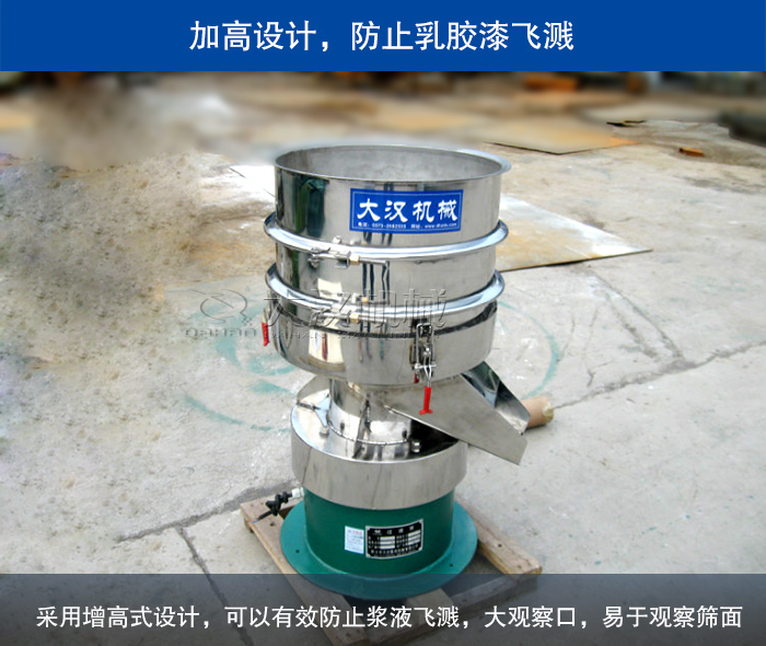 乳膠漆是一種帶有一定粘稠度的漿液,但是在其進(jìn)行加工過程中,需要使用振動(dòng)篩對(duì)其進(jìn)行除雜過濾,由于考慮到乳膠漆在篩分過程中可能發(fā)生的漏液、飛濺情況,大漢廠家建議大家使用使用進(jìn)料口帶有加緣口的450過濾篩進(jìn)行篩分。