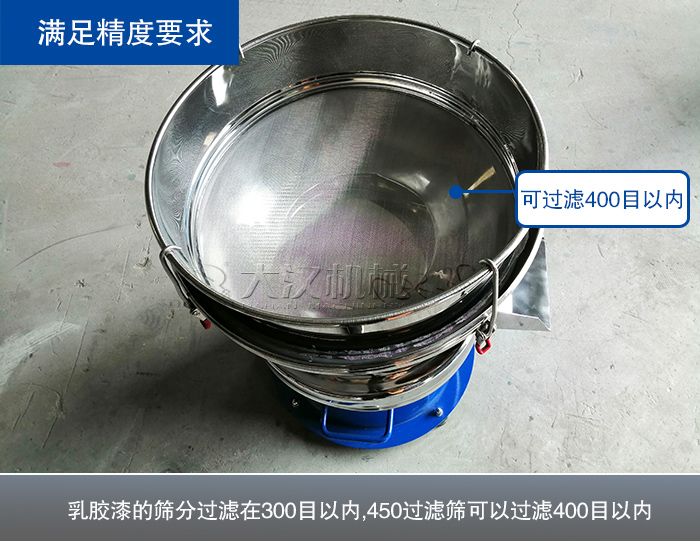 由于乳膠漆的篩分過濾一般精度要求不高,基本在300目以內(nèi),而且一般的篩分目的為除雜過濾,450過濾篩可以可以過濾400目以內(nèi)的物料。