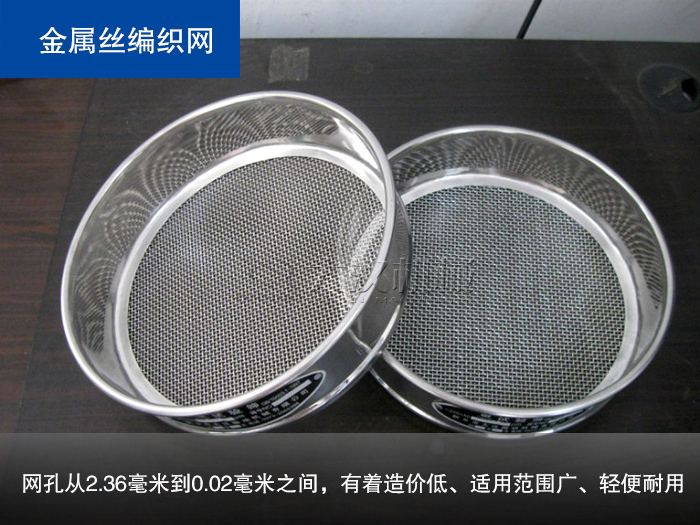 金屬絲編織網(wǎng)是由一定粗細(xì)的金屬絲縱橫編織而成的方形篩孔的篩網(wǎng),網(wǎng)孔從2.36毫米到0.02毫米之間,有著造價(jià)低、適用范圍廣、輕便耐用的特點(diǎn),常用在粉末物料或者小顆粒物料篩分的諸如超聲波振動(dòng)篩旋振篩類的輕型篩分設(shè)備上。