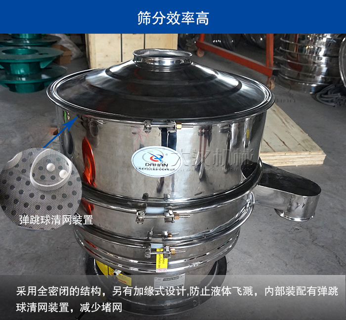 香油除雜過濾過程中易出現(xiàn)飛濺現(xiàn)象,不銹鋼振動篩采用全密閉的結(jié)構(gòu),另有加緣式設計,可以保證香油在篩分過程中不會出現(xiàn)液體飛濺等現(xiàn)象,而且大漢不銹鋼振動篩篩機內(nèi)部裝配有彈跳球清網(wǎng)裝置,可以在篩機工作時對篩面進行清潔處理,減少篩分過程中出現(xiàn)的堵網(wǎng)問題,進一步提高不銹鋼振動篩的篩分效率。