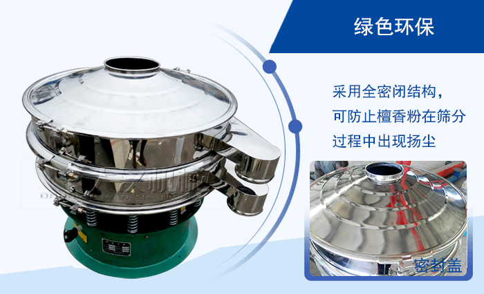 旋振篩采用全密閉結(jié)構(gòu),可防止檀香粉在篩分過程中出現(xiàn)揚塵等現(xiàn)象,降低了對環(huán)境的污染。