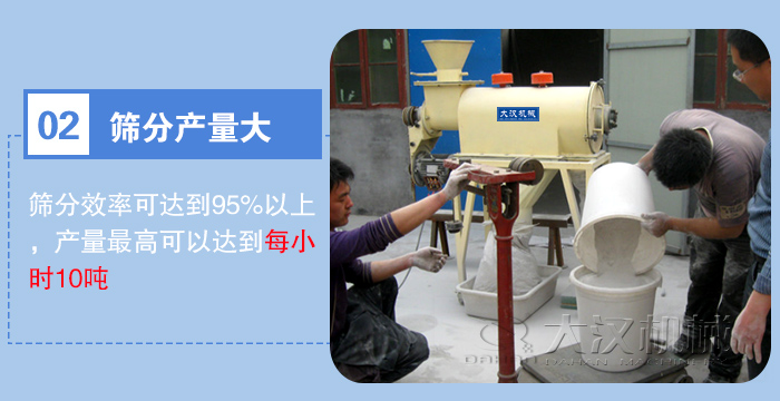 大漢氣旋篩可以與風(fēng)機(jī)并網(wǎng)配套使用,搭配脈沖除塵器,可長時間運(yùn)作,處理量大,篩分效率可達(dá)到95%以上,產(chǎn)量高可以達(dá)到每小時10噸,是普通振動篩的5-10倍或更高。