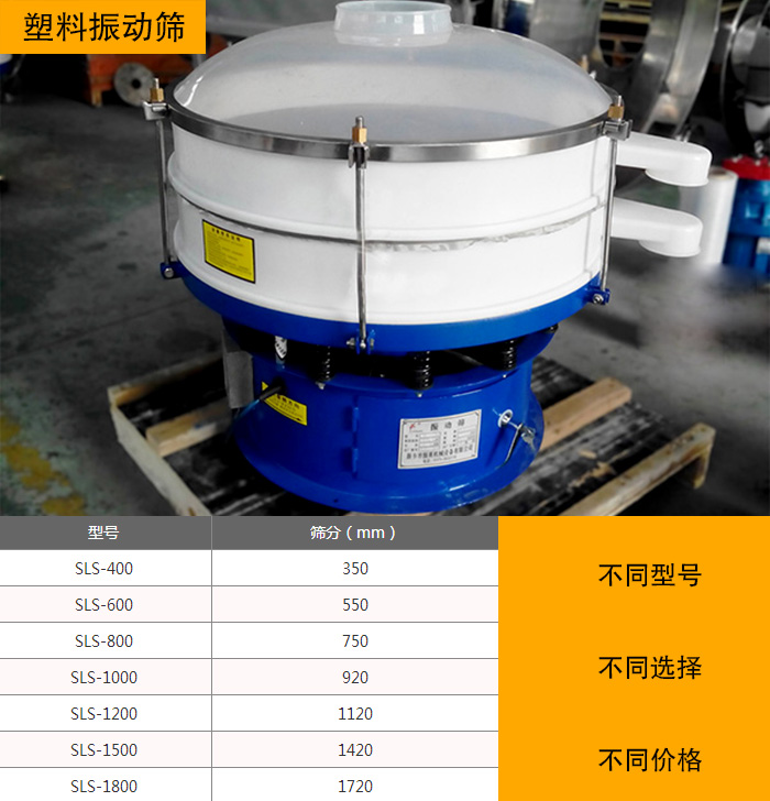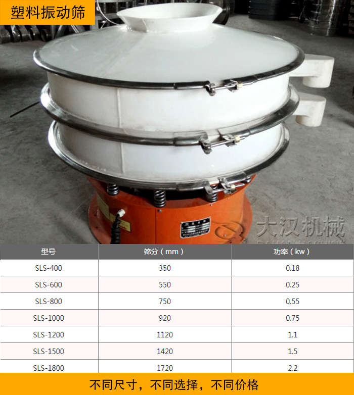 不同型號的塑料振動篩,其價格是不同的。大漢塑料振動篩型號有SLS-400,SLS-600,SLS-800,SLS-1000,SLS-1200,SLS-1400,SLS-1500,SLS-1800。不同型號的塑料振動篩單位時間內(nèi)處理能力也不一樣。SLS-400塑料振動篩的篩分直徑為350mm,而SLS-1800塑料振動篩的篩分直徑為1720mm,這就造成兩種型號的塑料振動篩處理能力上具有差異化,因此,這需要根據(jù)用戶的要求進(jìn)行合理選型與設(shè)計(jì)。