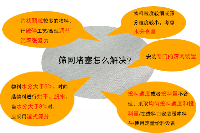 造成篩網(wǎng)堵塞的因素很多,但總結(jié)起來主要有有兩大類,一是物料本身的各種特性,二是振動篩網(wǎng)結(jié)構(gòu)。