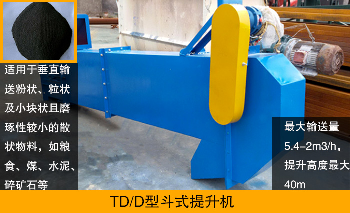 TD型斗式提升機是按照JB3926-85《垂直斗式提升機》標準設計生產的,該種類斗式提升機使用功率比較低,輸送物料范圍廣。與傳統(tǒng)D型斗式提升機相比,該種類的斗式提升機輸送效率高、料斗形式多。它主要是由運行部分(料斗與牽引膠帶)、帶有傳動滾筒的上部區(qū)段,帶有拉緊滾筒的下部區(qū)段,中間機殼,驅動裝置,逆止制動裝置等組成,大輸送量5.4-2m3/h,提升高度大40m。